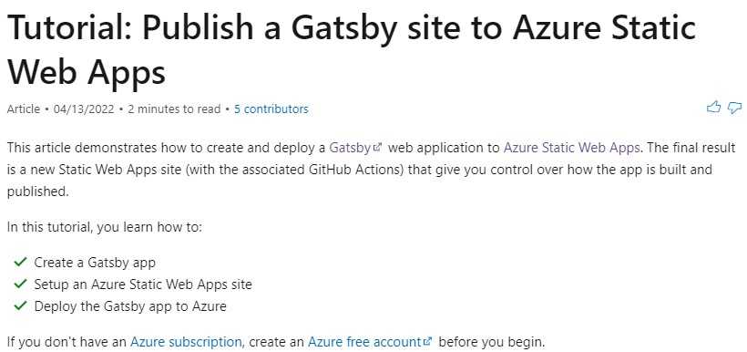 projects. In summary, I used a blog starter template based on Gatsby and hosted it in Azure Static Web Apps for free.